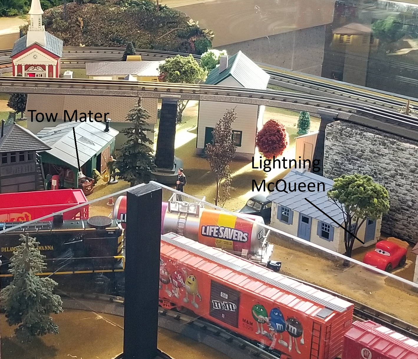 - Tow Mater – in the service station in the corner of the center and right section of the U