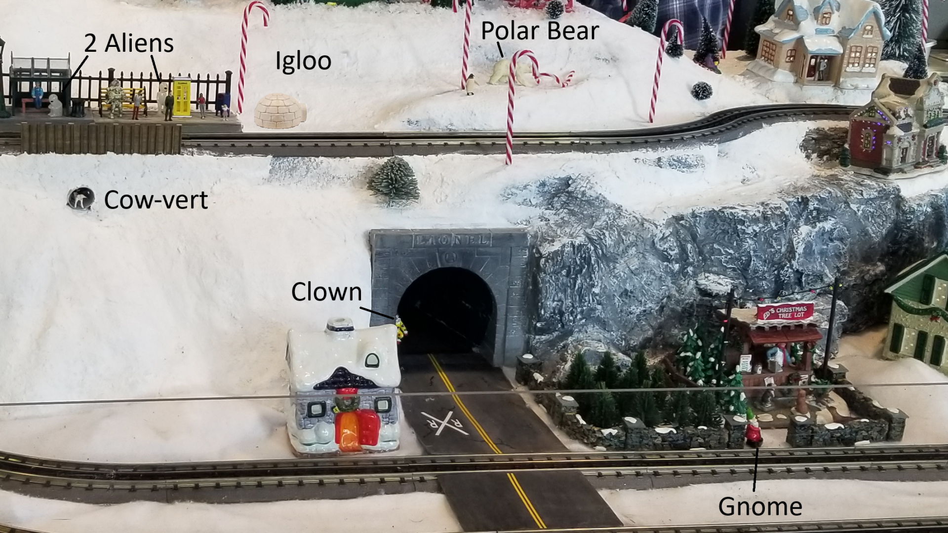 - 3 Gnomes – one is in the Christmas Tree lot, another is over by the 3-room hotel next to the carnival rides, third one by cafe below and to the right of big white building